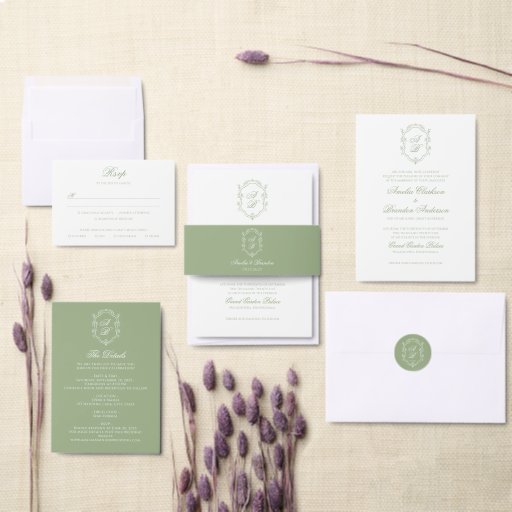 Classic Sage Green Floral Monogram Crest WeddingDesigned by Jessica Senarlo
