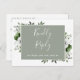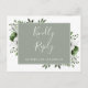 An elegant watercolor sage green floral RSVP card with chic typography. The reverse features your details and a fun guest song request. Designed by Thisisnotme©