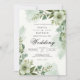 Delicate sage green foliage and soft floral elements frame this elegant design. The watercolor wash effect creates a dreamy and serene atmosphere for a special occasion.