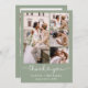 Sage Green Four Photo Collage Script Wedding Thank You Card