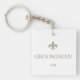 Sage Green French Fleur de Lis Best Man Initials Key Ring
