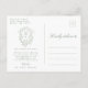 Sage Green French Floral Crest Wedding Thank You Postcard