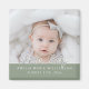 This fridge magnet features a fun script styled font "Hello, Baby" at the bottom edge of the your own baby photo above a sage green background with your baby's name and birth date in a modern clean crisp printed white font.. ,