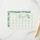 Sage green wedding RSVP response card featuring elegant vertical stripes with a delicate chinoiserie floral accent. Designed for guests to joyfully accept or decline while selecting their meal choice, this response card adds refined garden charm to your coordinated invitation suite. Perfect for spring and summer weddings with a romantic English cottagecore aesthetic.