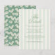 Sage green wedding details enclosure card featuring elegant vertical stripes with a chinoiserie floral accent for a refined garden aesthetic. Perfect for sharing venue information, hotel blocks, transportation, and wedding website details. Inspired by English cottagecore style, this design adds a soft romantic touch to your invitation suite while keeping your information organised and beautifully presented.