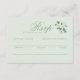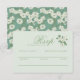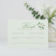 Sage green wedding RSVP response card featuring elegant vertical stripes with a delicate chinoiserie floral accent. Designed for guests to joyfully accept or decline while selecting their meal choice, this response card adds refined garden charm to your coordinated invitation suite. Perfect for spring and summer weddings with a romantic English cottagecore aesthetic.