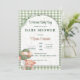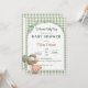 Celebrate the upcoming arrival of a precious baby boy with this charming gingham baby shower invitation. Featuring a sage green gingham pattern, a sweet teddy bear, and a soft, neutral colour palette, this invitation sets a warm and inviting tone for your special event. Personalise with all your baby shower details to create a beautiful keepsake for the parents-to-be. Perfect for a modern and elegant celebration.