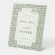 Celebrate the upcoming arrival of a little one with this charming baby shower pedestal sign, featuring a classic green gingham border and back, elegant, black script fonts, and a sweet watercolor bow at the top. Perfect for a country-style celebration, this invitation is both warm and stylish. Customise the text for your event details and create a keepsake-worthy invite that guests will adore.