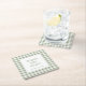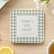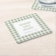 Sage Green Gingham Check Rustic Baby Shower Square Paper Coaster