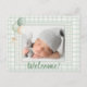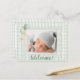 Sage Green Gingham One Photo Gender Neutral Birth Announcement Postcard