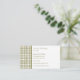 These business cards have a sage green and white gingham plaid patterned border and are ready to be customised with all of your information in coordinating sage green lettering.