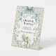 Add a touch of whimsy to your Sage Gingham Woodland Squirrel Baby Shower with this charming pedestal diaper raffle sign! Featuring a sweet little squirrel holding flowers amid soft blue bows and delicate greenery on a classic gingham background, it's perfect for encouraging guests to bring diapers and enter the raffle. "Thank you for bringing diapers! Place your raffle ticket here." Easy to display on a table or easel—customizable and printed on high-quality materials. Complete your adorable forest-themed celebration today!