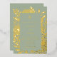 A sage green background decorated with real gold foil botanical pattern and text. Personalize and add your monogram initials and the details.