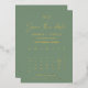This elegant sage green calendar monogram script save the date card is excellent for a relaxed wedding. The basic gold design is adorned with a lovely romance typeface in a modern glam style.