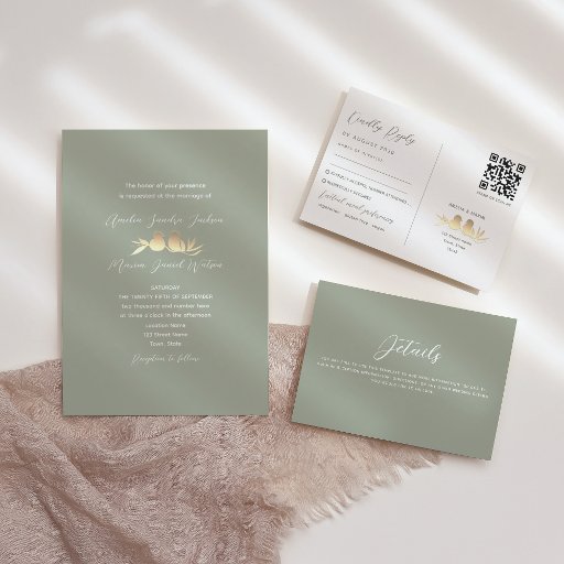 Sage Green and Gold Lovebirds Wedding SuiteDesigned by Yana Bor