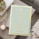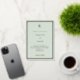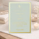 A sage green colored background decorated with a gold foil frame. Personalize and add your monogram, initials and the details.