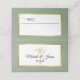 Simply elegant place card design featuring modern script in black text with an artistic palm tree in a metallic gold frame. A coordinating sage green background is on the front and back inside of the folded card. Please contact me if you need help or a custom order.