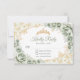 Sage green floral Quinceanera RSVP reply card. Features, script font, gold butterflies, watercolor roses and tiara. Perfect for an elegant princess style glam celebration. Personalize with your own details.