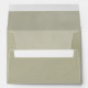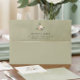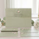 A refined wedding envelope in a soft sage green tone, finished with a delicate velvet-like texture and a subtle gold accent band across the flap. The understated botanical detail and clean typography create an elegant, timeless presentation for your invitation suite.