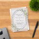 A clear, transparent background decorated with sage green greenery. A faux silver frame. Personalise and add your names and details.