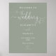 This elegant sage green heart script wedding welcome sign can be personalised with your information in chic typography. Designed by Thisisnotme©