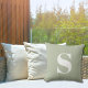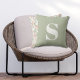 Sage Green Initial Monogrammed Outdoor Pillow. Decorative outdoor pillow with a single initial. Personalise quickly and easily.