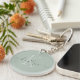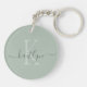 This modern sage green keychain with your first name in a trendy script font in a dark sage green and your first initial in a modern cap font in light sage green is perfect for your keys.