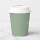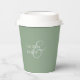 Chic and minimalist. These lovely wedding paper cups feature couple monogram in white and sage green colours, against a trendy sage green background. The back remains a contrasting ivory colour.