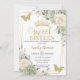 Sage Green Ivory Floral Butterflies Gold Sweet 16 Invitation
