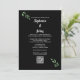 Sage Green Leaf Black White Script QR Code Wedding Invitation