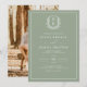 Sage Green Leafy Crest Monogram Photo Wedding Invitation