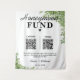 Turn your future adventures into a high-impact focal point with this "Sage Green Leaves" honeymoon fund QR code wedding tapestry. Custom-designed for a fresh, botanical-inspired reception, this display features delicate hand-painted foliage and sophisticated modern typography. More than just a sign, it serves as a premium, digital-first bridge that turns your gift registry into a soulful, high-quality experience. Simply click "Personalise" to add your custom QR code and names, ensuring you leave a crisp, professional, and organised impression on every guest as they contribute to your new journey together.