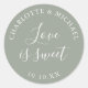 Sage green wedding favor love is sweet classic round sticker. Designed by Thisisnotme©