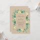 This design features a warm tan background layered with a rich watercolor floral arrangement. Delicate pale yellow roses and deep green blossoms are nestled amongst a variety of sage greenery and eucalyptus leaves. The earthy colour palette evokes a serene, natural atmosphere perfect for a seasonal outdoor ceremony. Hand-painted botanical details create a sophisticated yet organic feel.