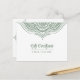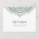 Elegant sage-green ornate lace mandala design white background, customisable gift certificate postcard design.