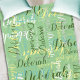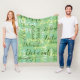 Sage green fleeceblanket personalised with your own name in a cool pattern design, written in stylish handwritten font-styles