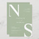 Sage Green Minimalist Elegant Bold Initial Wedding Invitation