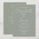 This sage green minimalist elegant script wedding invitation can be personalised with your information in chic typography with your wedding website details and your QR code on the reverse. Designed by Thisisnotme©