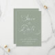 Effortlessly stylish and perfect for setting the tone, this Sage Green Minimalist Elegant Wedding Save the Date is designed to capture the serene beauty of your love story. The calming sage green palette offers a fresh, modern backdrop that blends seamlessly with any wedding theme, from boho to classic chic. Worried about the details not aligning with your style? This design is fully customisable to reflect your vision, ensuring a perfect match with your unique wedding aesthetic. And for couples on the go, the option to send digitally lets you share the excitement without missing a beat. Choose a Save the Date that doesn’t just invite, but inspires—because your day deserves nothing less.