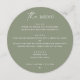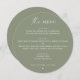 Add a touch of earthy sophistication to your event with this minimalist round menu in a calming sage green tone. Designed with a modern circular layout and inspired by natural woodland elements, this pastel menu card brings a refined, organic charm to your reception tables. While perfect for weddings, it’s also a stylish choice for rehearsal dinners, summer garden parties, anniversaries, bachelorette celebrations, and other special occasions. Personalise with your menu and event details to create a cohesive and memorable presentation.