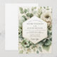 Experience a serene and romantic atmosphere with this elegant design. Softly painted in shades of sage green and creamy ivory, the artwork evokes a feeling of tranquil beauty. The composition features delicate white anemones nestled among lush, verdant eucalyptus leaves for a timeless and natural aesthetic.