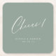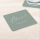 Sage Green modern cheers script minimalist wedding Square Paper Coaster