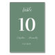 Sage Green, elegant, chic, script, calligraphy Wedding table number. Simple, minimalistic. Trendy, budget table numbers. You can personalise with your names, number and the date.