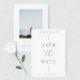 Modern, elegant save the date card features a minimalist sage green and white design. Personalise with your wedding details with the easy to edit template featuring an elegant script font and classy serif font. Replace the photo on the front and back with your own and update your wedding website URL. Check out matching items in the “Sage Green Modern Elegant” collection.