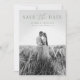 Modern, elegant save the date card features a minimalist sage green and white design. Personalise with your wedding details with the easy to edit template featuring an elegant script font and classy serif font. Replace the full photo on the front with your own with the option to remove the black and white filter. Then, replace the back photo with your own and update your wedding website URL. Check out matching items in the “Sage Green Modern Elegant” collection.