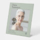 Honor your loved one with a beautifully designed pedestal tabletop funeral photo sign, created to serve as a heartfelt tribute during a funeral, memorial service, wake, or celebration of life. This elegant memorial table sign features sage green color, modern design motif with a stylish cross and the phrase "forever in our hearts". Add your cherished picture along with custom name and dates, offering a meaningful way to say in loving memory.