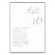 This modern table numbers card features a sage green handwritten script and minimalist typography. Personalise by adding your details. This custom table card is perfect for weddings, bridal showers, baby showers, and other events.