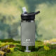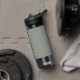 Simple and sleek, this custom sage green water bottle design has modern typography spelling out your monogram initials in lower case type face with your name in all caps in a smaller font size placed below your monogram for a professional contemporary look. Take along this attractive personalised water bottle whoever you go! It is a great way to compliment your personal business branding.