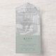 Add a personal touch to your wedding celebrations with our sage green modern all-in-one invitation featuring your favourite photo! Create a timeless design that all your guests will love and appreciate with a beautiful invitation that combines a sleek modern look with the personal touch of your favourite picture. The conveniently designed tear-off RSVP section makes it easy for your guests to respond quickly and accurately, so you can plan accordingly. No need to worry about taking a black and white photo, our software will convert it for you.