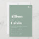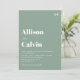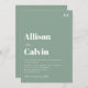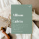simple wedding invite template, modern text design with sage green colours, add your own details and QR code.